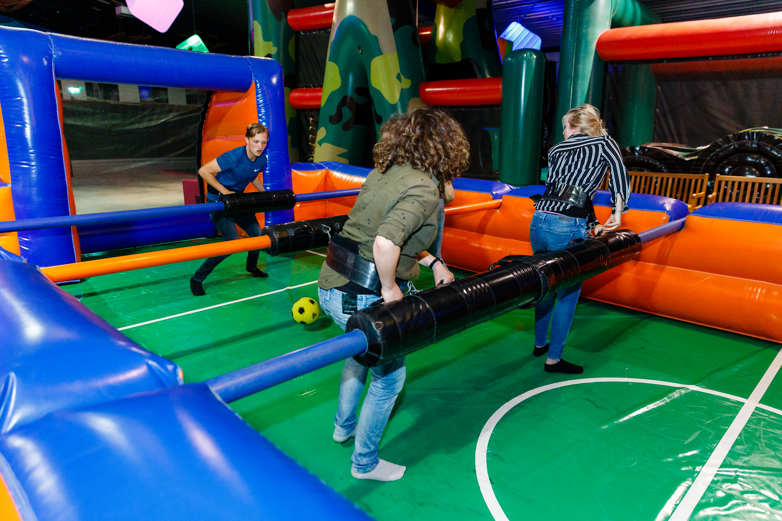 Voor zakelijk Bekijk de mogelijkheden Voor particulier Bekijk de mogelijkheden Voor kinderfeestjes Bekijk de mogelijkheden Levend tafelvoetbal Ons levend tafelvoetbalspel lijkt op het welbekende voetbalspel uit het spelershome. Bij de Avontuurfabriek kun je nu zelf onderdeel worden van het spel! Het doel van het Levend Tafelvoetbal is om zoveel mogelijk doelpunten te scoren bij de tegenstander. Het team dat de meeste doelpunten heeft gescoord is het winnende team. Overige Onder begeleiding van een scheidsrechter